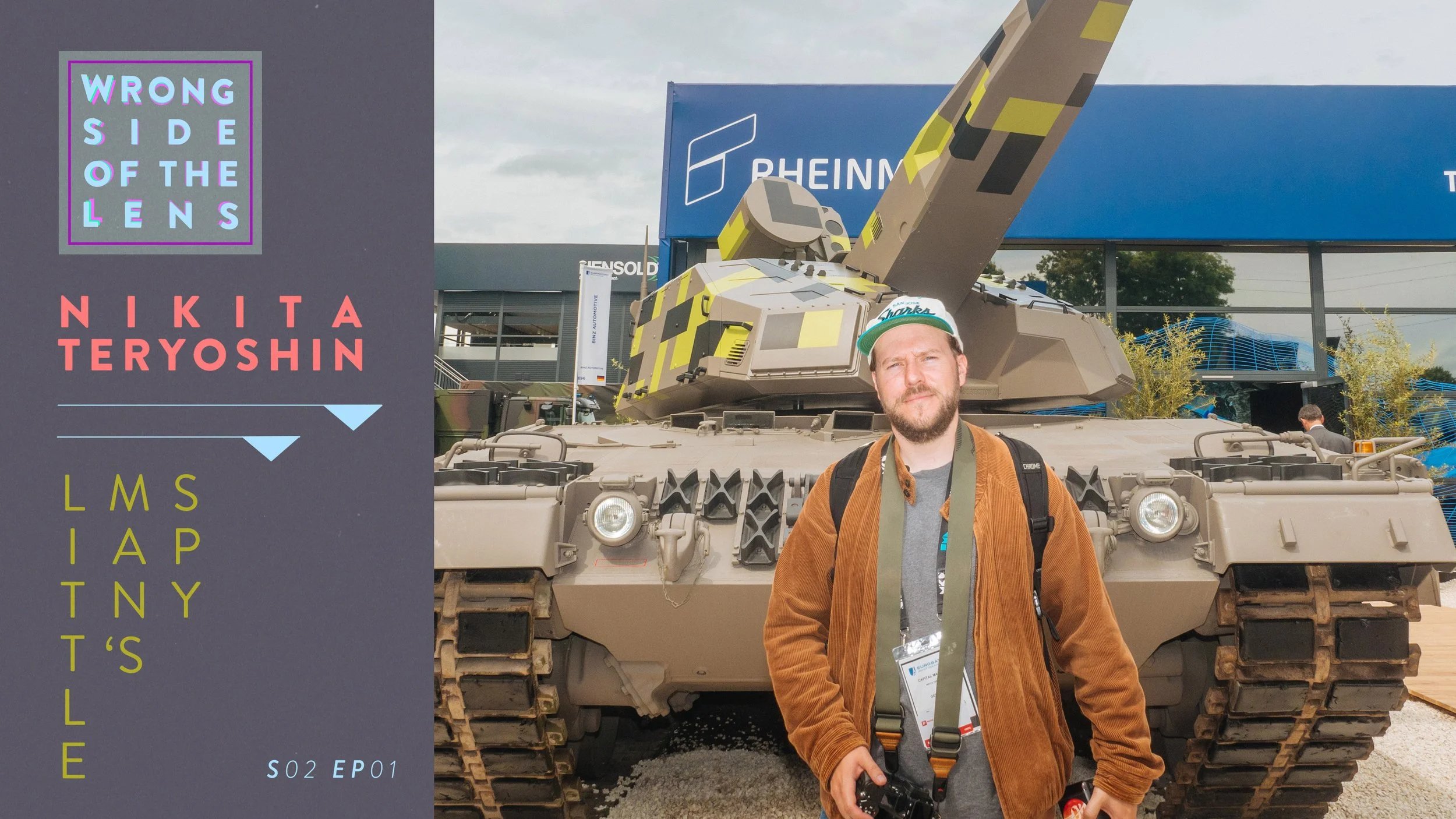 In this episode of WRONG SIDE OF THE LENS, photographer Nikita Teryoshin, winner of the 2020 World Press Photo Award, takes the series behind the curtains of the global arms trade. Filmed in Paris, Little Man’s Spy captures his sharp humor, empathy, and visual wit as he exposes the surreal world of weapons expos and the contradictions behind his acclaimed project Nothing Personal: The Back Office of War – the complete opposite of a battlefield: an oversized playground for adults with wine, finger foods and shiny weapons.